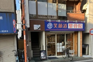 笑顔道整骨院の建物の2Fです、階段をお上がりください。